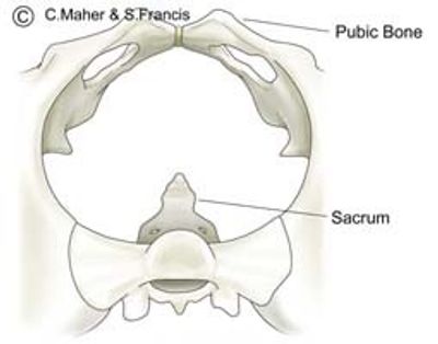 The diagram to the left illustrates an empty pelvis looking from above. At the back is the sacrum (tailbone) and the front is the pubic bones.