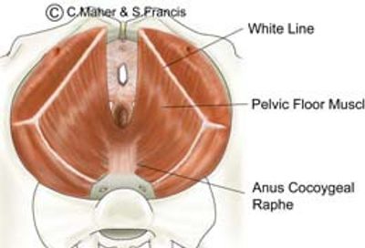 The pelvic floor muscles form a sling around the lower pelvic outlet and when contracted offers support to the lower bowel, the genital tract and the lower urinary tract. These muscles arise from the white line (arcus tendineous fascia pelvis) on lateral pelvic side-wall and interdigitate with each other and the anococcygeal raphe in the centre.