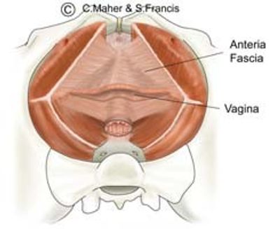 Women with a cystocele have a defect or weakness in this fascia. In women with stress urinary incontinence the fascia is weak resulting a lack of support for upper urethra.