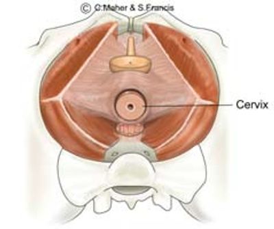 The top of the fascia on the anterior and posterior vaginal wall connect with cervix at the top of the vagina. The cervix is the very firm lower portion of the uterus and acts to stabilise the fascia of the female pelvis.