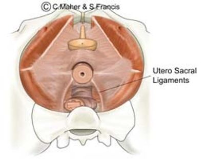 The cervix is also supported by the strong uterosacral ligaments that run from the sacrum (tailbone) to the cervix. Women with upper vaginal prolapse (uterine prolapse, vault prolapse or enteroceles) have defects in the uterosacral and / or cardinal ligaments that allows the prolapse to occur.